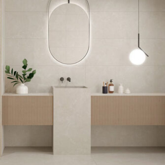 Πρόκειται για πλακίδια διαστάσεως 90×90 τα οποία είναι ματ επιφάνειας και μοιάζουν με χρώμα της άμμου σαν μάρμαρο.