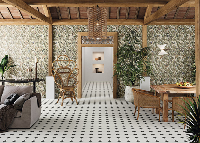 Μπορεί να συνδυαστεί με την σειρά Tropical στον τοίχο, με διαστάσεις 30,5×30,5. (όπως στην κυρίως φωτογραφία)