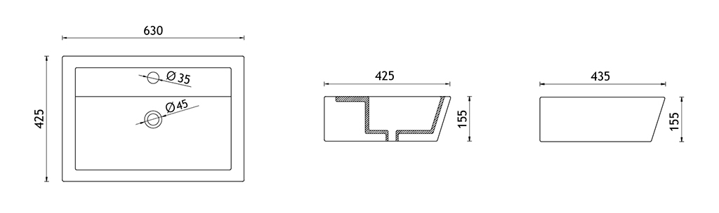 Επιτραπέζιος νιπτήρας από πορσελάνη, της Ελληνικής εταιρείας Vitruvit με διαστάσεις 63×42,5.