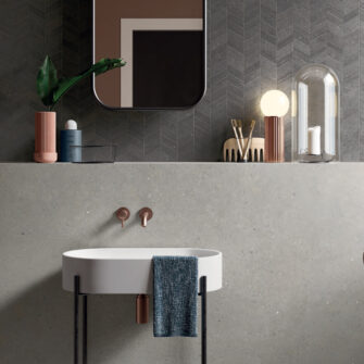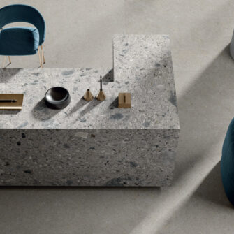 Πρόκειται για γρανιτοπλακάκια πολύ υψηλής αντοχής, ματ, που μοιάζουν με φυσική επιφάνεια τσιμέντου.