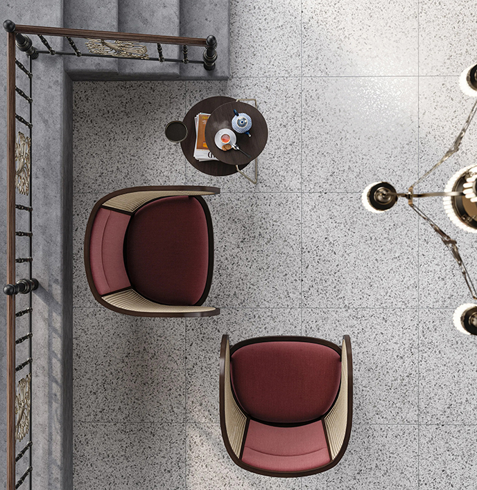 Πρόκειται για γρανιτοπλακάκια πολύ υψηλής αντοχής, ματ επιφάνειας, που μοιάζουν με (terrazzo) μωσαϊκό και τα οποία διατίθενται σε διαστάσεις 75×75.