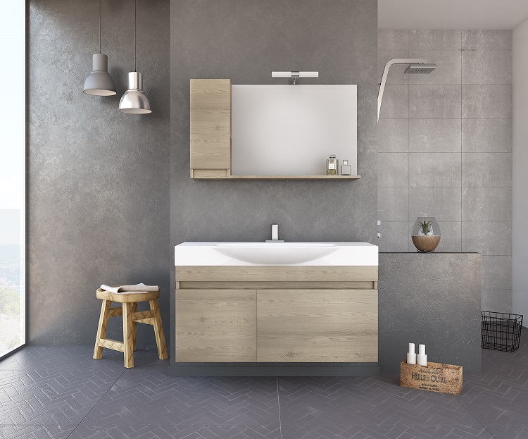 Το συγκεκριμένο έπιπλο είναι φτιαγμένο από MDF αρίστης ποιότητας και αποτελείται από τον πάγκο, ο οποίος είναι φτιαγμένος από νιπτήρα πορσελάνης, το ντουλάπι βάσης, τον καθρέπτη με διπλό ντουλάπι, το φωτιστικό και την βαλβίδα χωρίς υπερχείλιση.