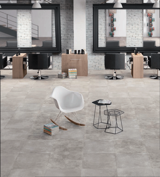 Πρόκειται για πολύ υψηλής αντοχής, αντιολισθητικό και ματ επιφάνειας πλακάκι, rettificato το οποίο μοιάζει με εμφανή μπετόν (ή πατητή τσιμεντοκονία).