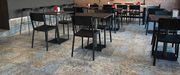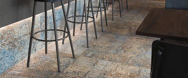Πρόκειται για γρανιτοπλακάκια πολύ υψηλής αντοχής, ματ επιφάνειας, vintage style, που μοιάζουν με διαβρωμένη από το χρόνο ταπετσαρία και τα οποία διατίθενται σε διαστάσεις 100×100 και 50×100.